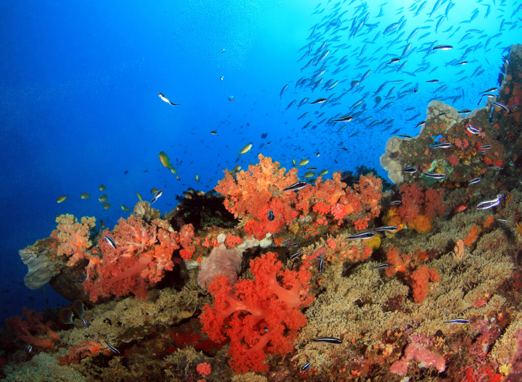 Previous Image Next Image Coral Reef Pescador Island A vibrant coral reef in Moalboal, Philippines, part of the Coral Triangle.