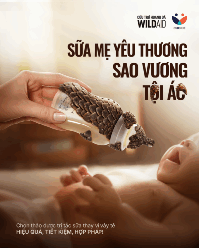 To further encourage behavior change in Vietnam, WildAid, in partnership with the Coalition for Wildlife Protection in TCM, Choice, and Dinosaur Vietnam, launched the Pangolin Milk Bottle Project on Vietnamese Women’s Day, October 20, 2025. The aim: to end the practice of treating blocked milk ducts with pangolin scales.