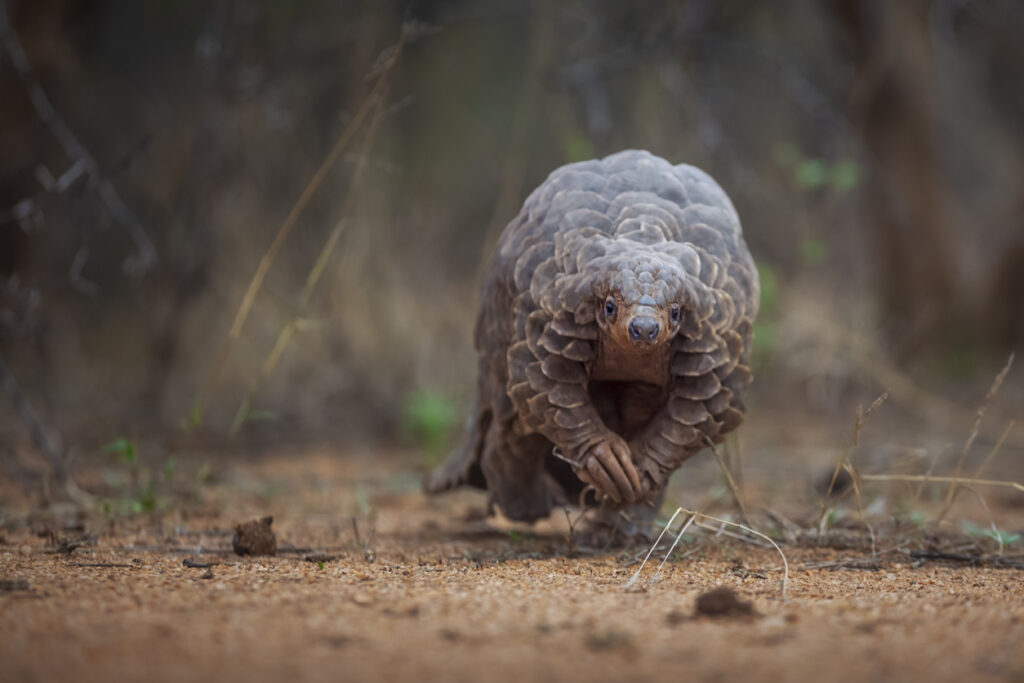 A ground pangolin or Temminck’s pangolin walks on two legs as it searches for ants.